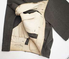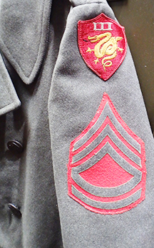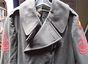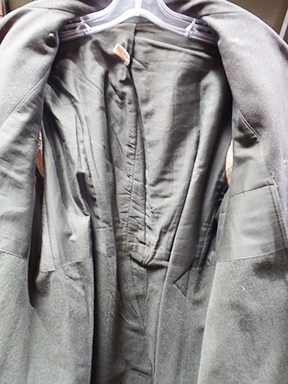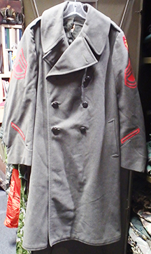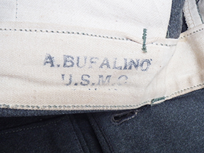 WWII era 3rd Marine Amphibious Battalion Overcoat. Wool overcoat is clean with just minor wear from age. All of the buttons are intact. 1941 dated and named. Labelled a size 4-S. Comes with trousers named to the same marine. Trousers have some pretty severe mothing.
