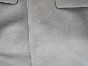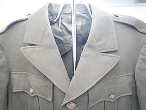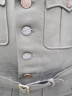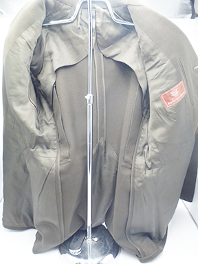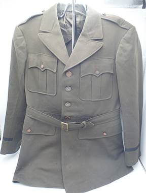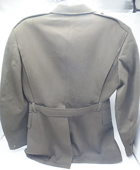 WWII US Army Transport Service Officers Service Coat. No patches or insignia, has the ATS buttons. The brass belt buckle is in good condition. Jacket is in good condition with some notable staining and mothing (see photos). Jacket is labeled a size 38R.