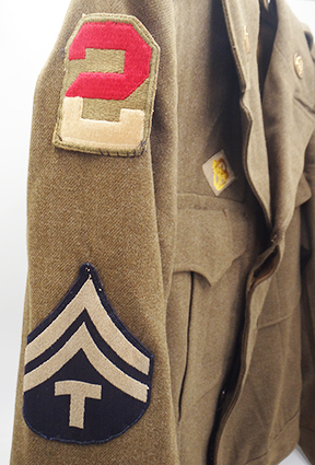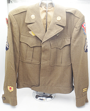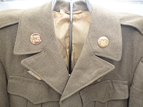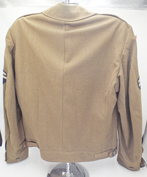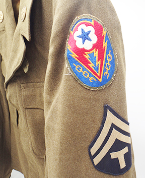 WWII US Army Red Ball Express Ike Jacket. Red Ball Express patch is French made. All other patches are US made. Some minor pinholes and stains on the jacket. Overall in very good condition. Jacket is a size 38R.
