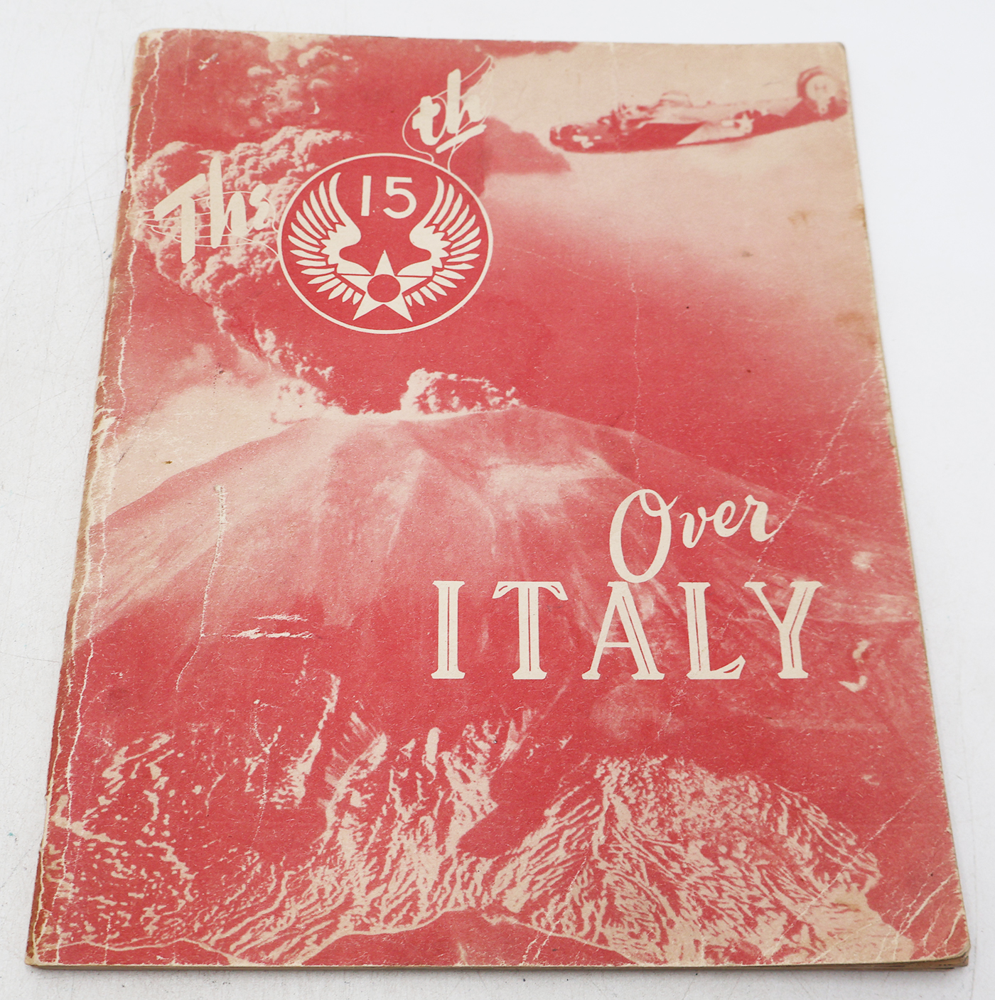 WWII era 15th Air Force Over Italy Pictorial History. Softcover. The book cover and pages have wear and are yellowed from age. Overall in solid condition. Lots of Photos and illustrations. The binding is strong. A few pages are loose. No torn or missing pages. The book is 1947 dated. The book contains approx. 68 pages.