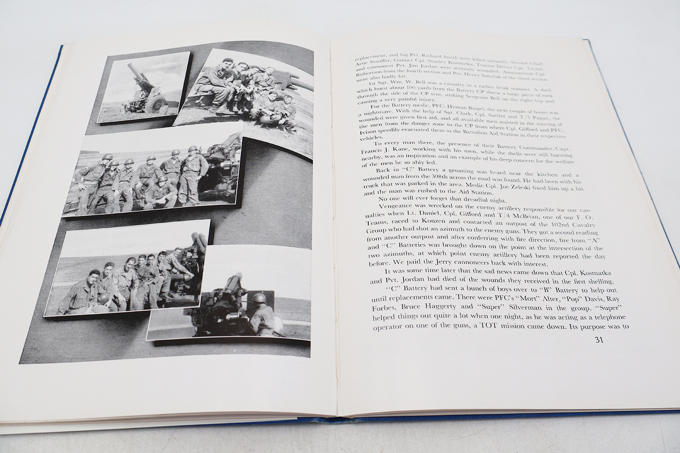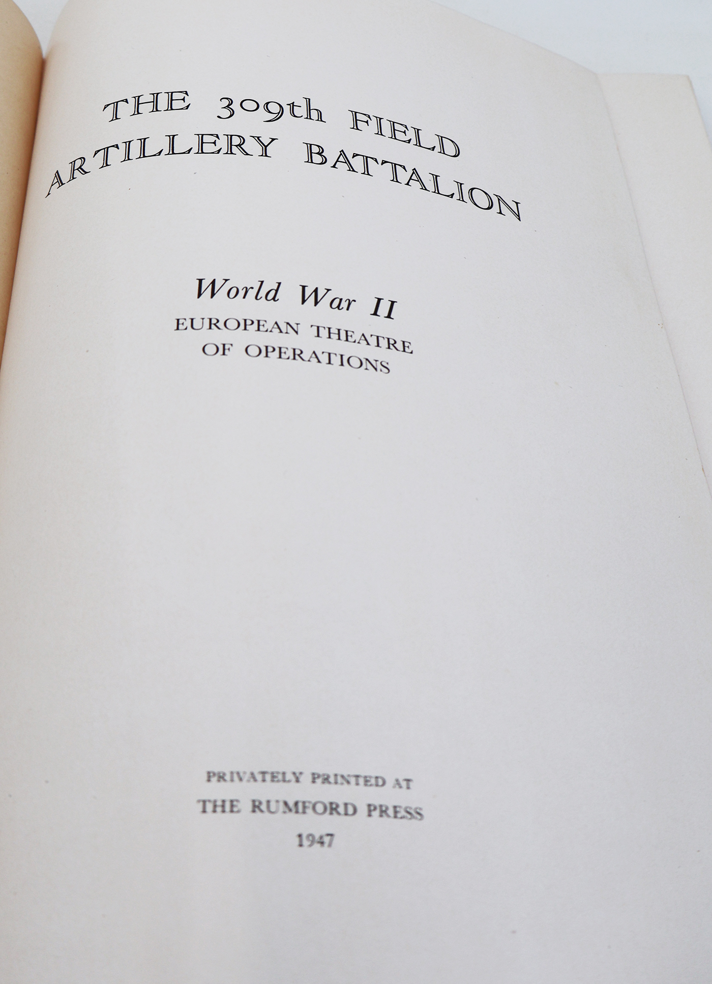 WWII era 309th Field Artillery Battalion Unit History. The book cover and pages are in good condition with minor wear. Lots of Photos and illustrations. The binding is strong. No torn or missing pages. Book looks hardly read. The book is 1947 dated. The book contains approx. 72 pages.