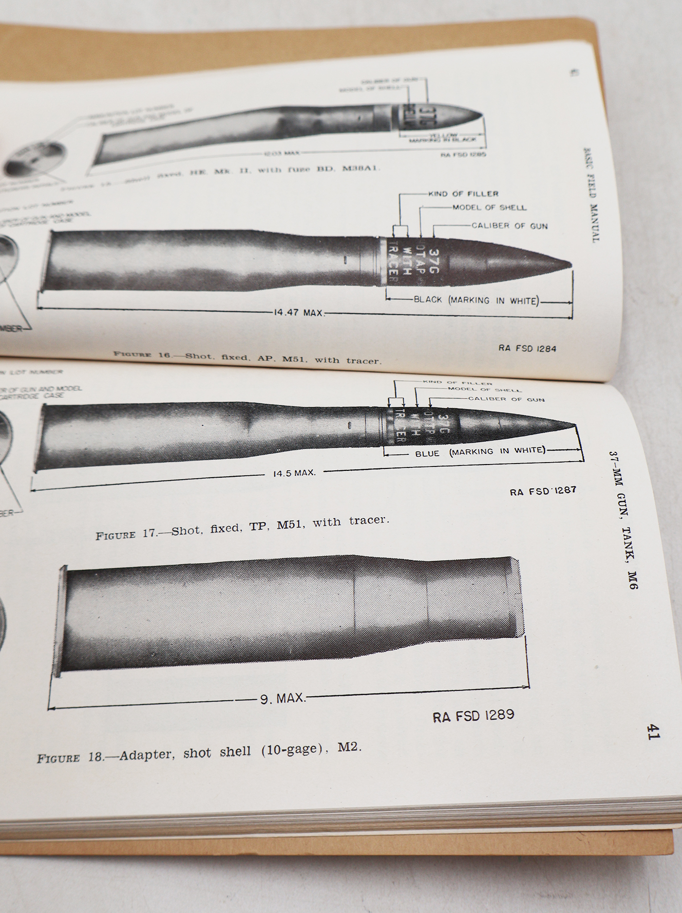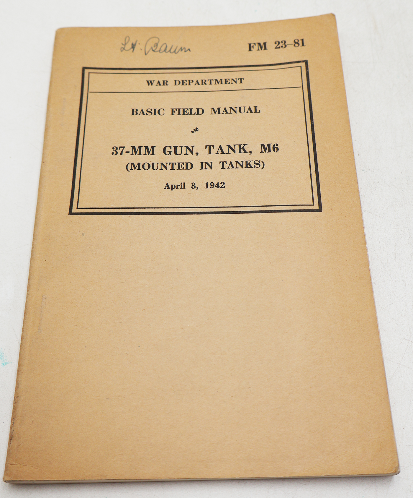WWII US War Department Manual Handbook On 37-MM Gun, Tank, M6 (Mounted In Tanks). Softbound. Dated 1942. Marked FM 23-81. 121 pages. Lots of great illustrations and photos. Minor wear from age. No torn or missing pages.