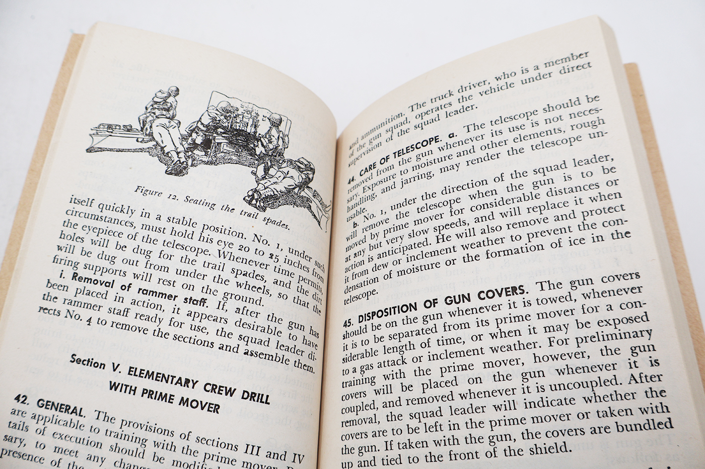 WWII US War Department Manual Handbook On the 57 MM Gun, M1. Softbound. Dated 1944. Marked FM 23-75. 156 pages. Lots of great illustrations and photos. Cover is clean and in good shape. The pages and binding are strong. No torn or missing pages.
