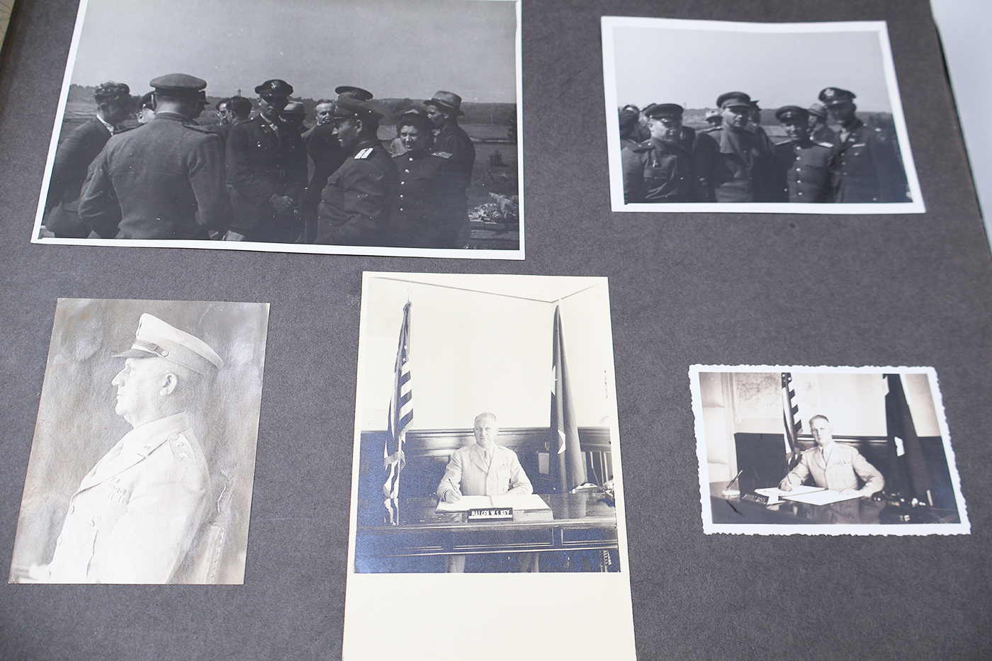 WWII era US Army Hungarian Occupation Forces Photo Album. Album belonged to Major General William S. Key. Large album at 16 x 12 inches. 100 plus photos of varying size. Many of the photos are 8x10 inches in size. Lots of great Soviet and British Officers mixed with Americans. The cover of the album has some wear, especially around the edges. Great artwork on the cover. Binding is strong and nearly all of the photos are clean and in great shape. This album depicts an occupation almost never discussed.