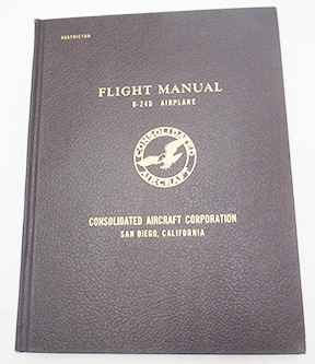 WWII B-24D Liberator Flight Manual. Hardbound. Printed in 1942. 188 pages. Written by Consolidated Aircraft Corporation in San Diego, CA. Both the cover and pages are in great shape with no torn or missing pages. Great graphics and imagery inside.