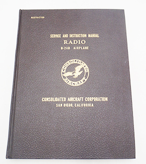 WWII B-24D Liberator Radio Manual. Hardbound. Printed in 1943. 252 pages. Written by Consolidated Aircraft Corporation in San Diego, CA. Both the cover and pages are in great shape with no torn or missing pages. Great graphics and imagery inside.