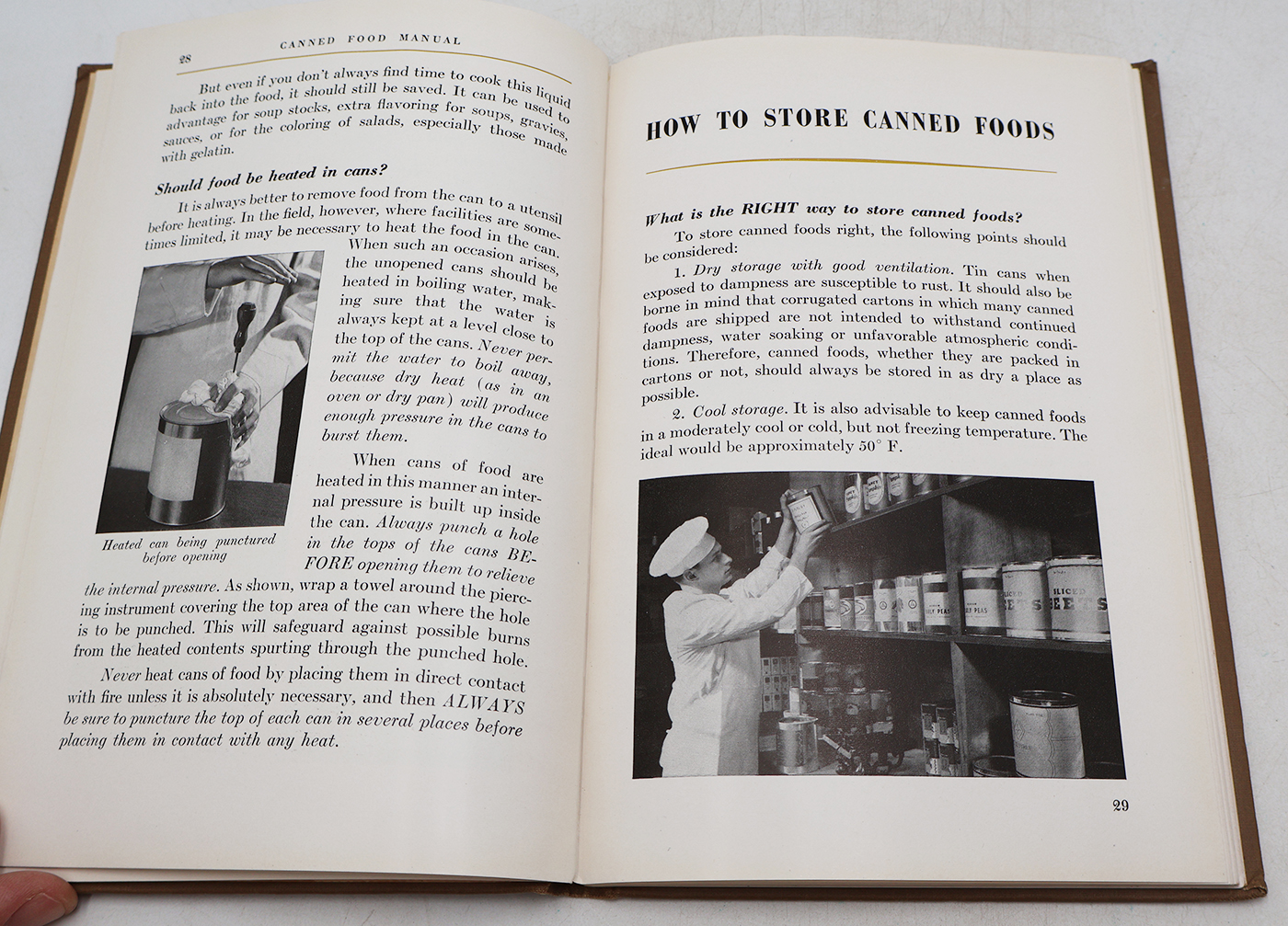 WWII US Army Canned Food Manual. Hardbound. Dated 1942. Published by The American Can Company. Over 104 pages. Lots of great illustrations and photos. Minor wear from age. No torn or missing pages.