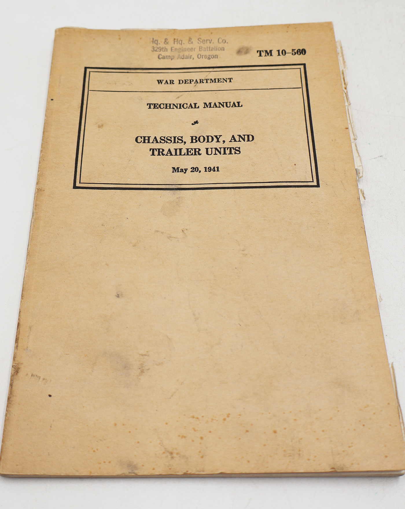 WWII US War Department Manual Handbook On Chassis, Body, and Trailer Units. Softbound. Dated 1941. Marked TM 10-560. 100 pages. Lots of great illustrations and photos. Minor wear from age. No torn or missing pages.