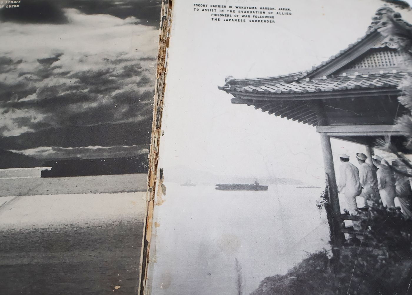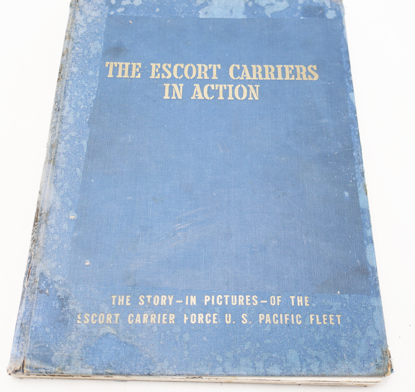 WWII era The Escort Carriers In Action Unit History. The book cover and pages have wear and some water damage. Lots of Photos and illustrations. The binding is worn (see photos) but still intact. No torn or missing pages. The book is 1946 dated. The book contains approx. 182 pages.