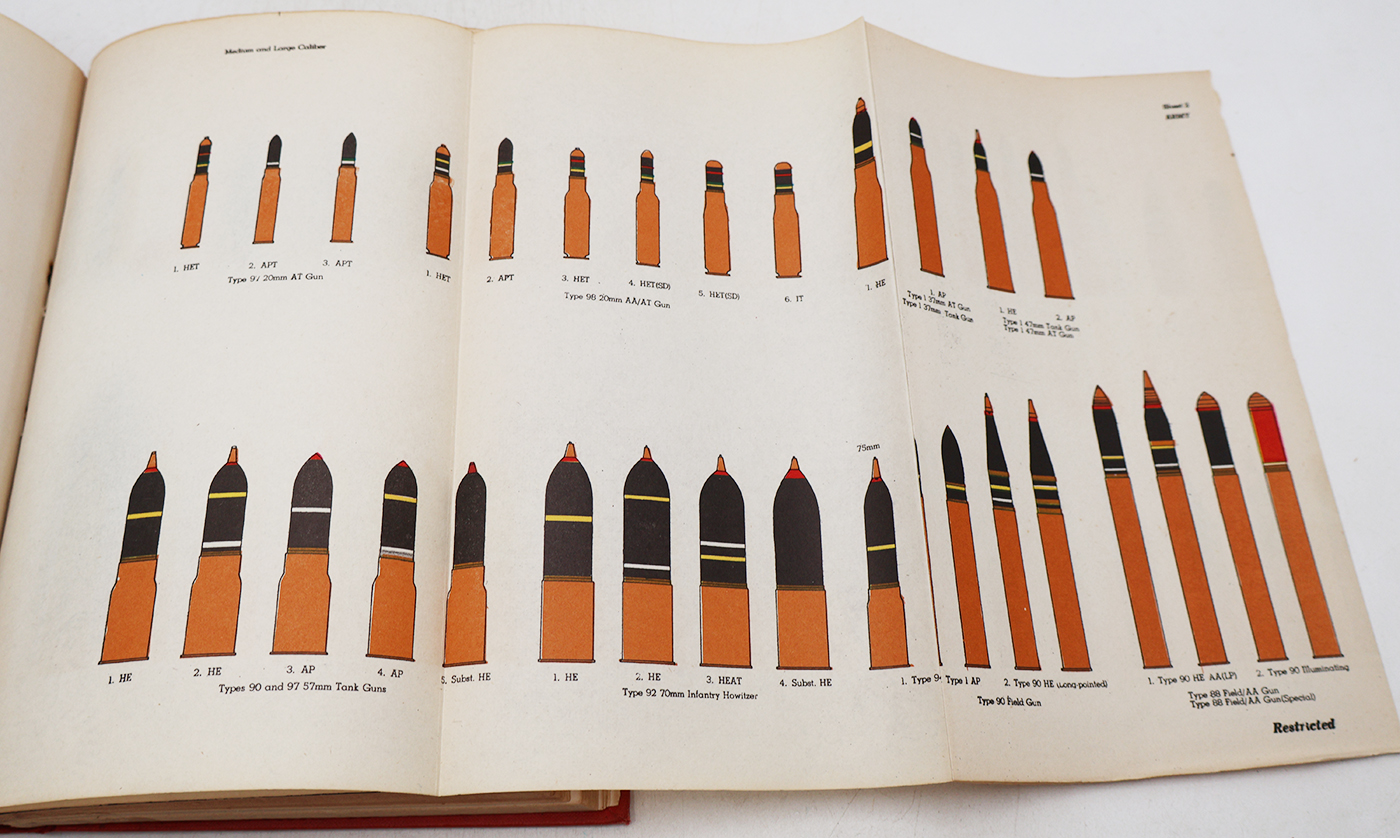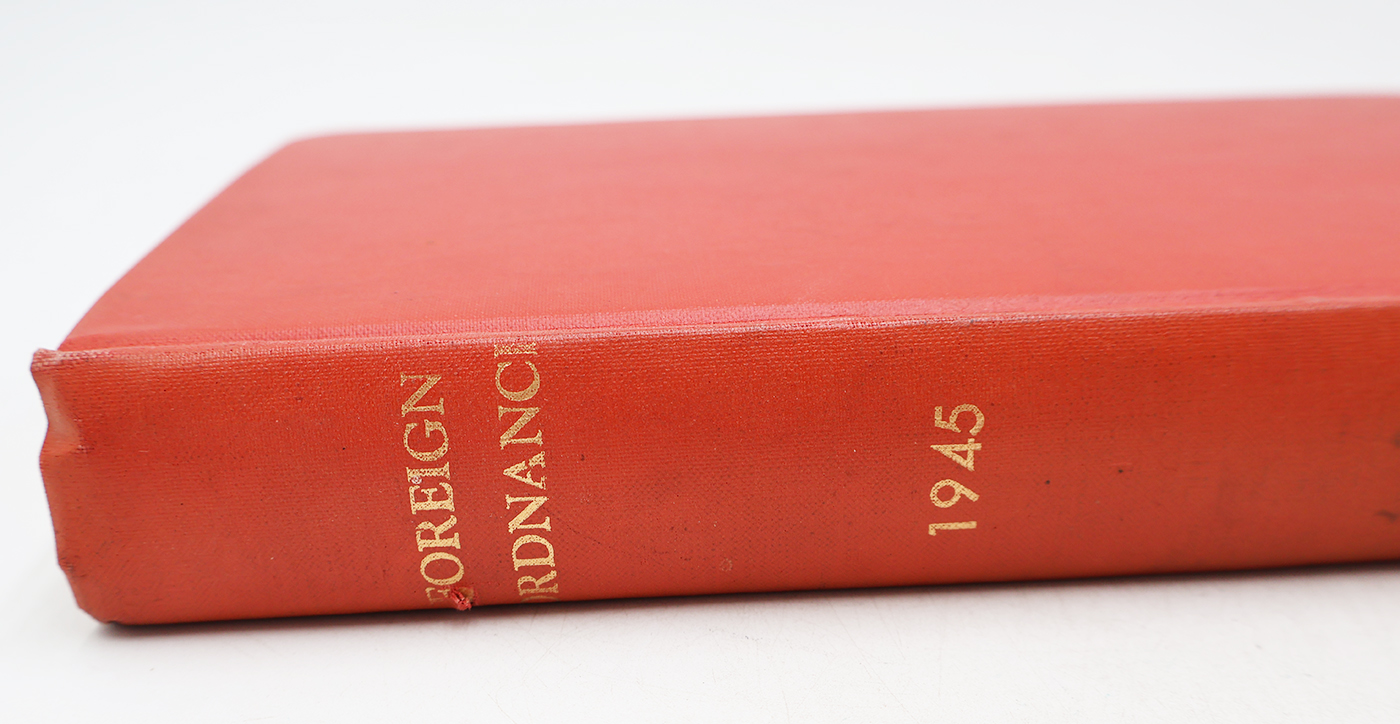 WWII US War Department Manual Handbook On Foreign Ordnance. Hardbound. Dated 1945. 514 pages. Lots of great illustrations and photos. Minor wear from age. No torn or missing pages.