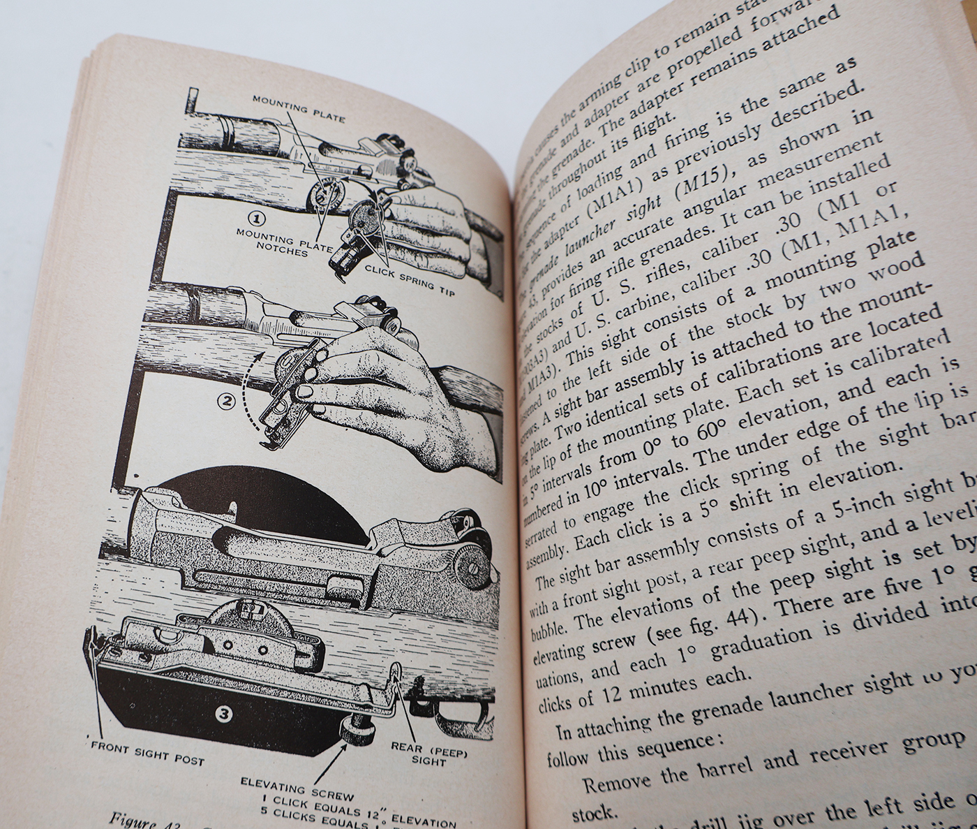 WWII US War Department Manual Handbook On Hand and Rifle Grenades. Softbound. Dated 1949. Marked FM 23-30. 116 pages. Lots of great illustrations and photos. Wear to the cover, but pages and binding are strong. No torn or missing pages.