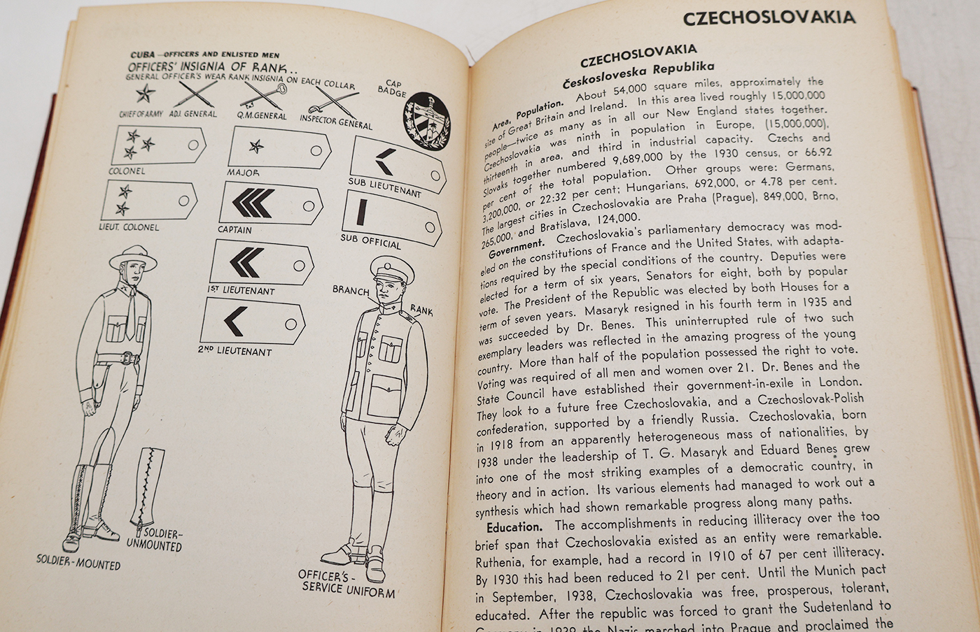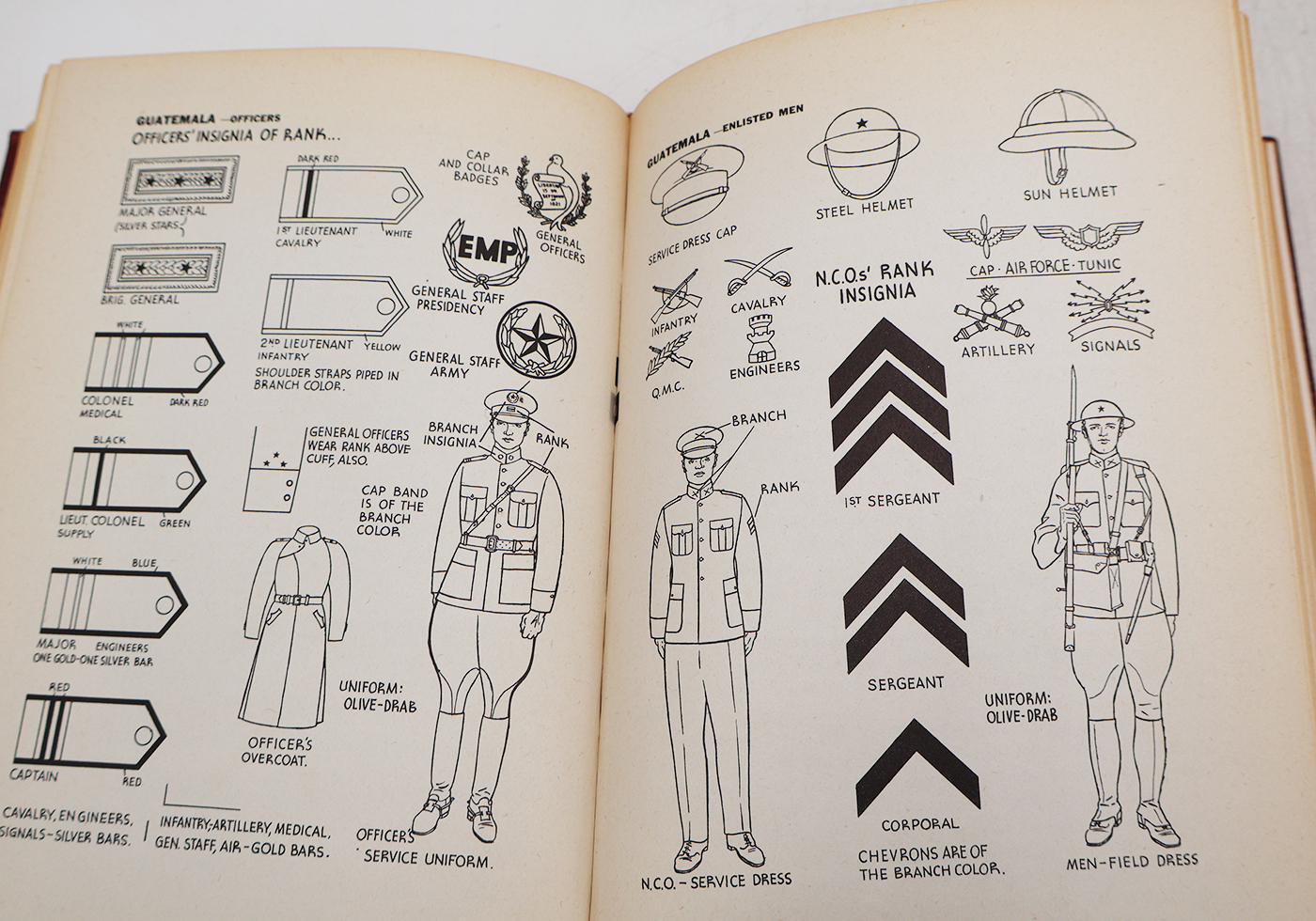 WWII Identification: The World's Military, Naval and Air Uniforms, Insignia and Flags. Hardbound. Dated 1943. Published by The Military Service Publishing Company. Over 300 pages. Lots of great illustrations and photos. Minor wear from age. No torn or missing pages.