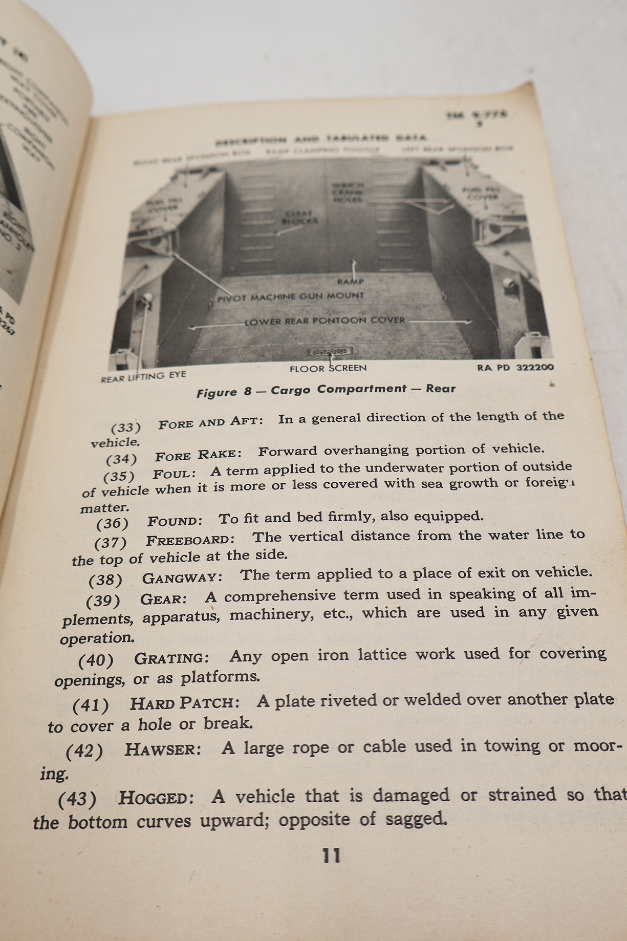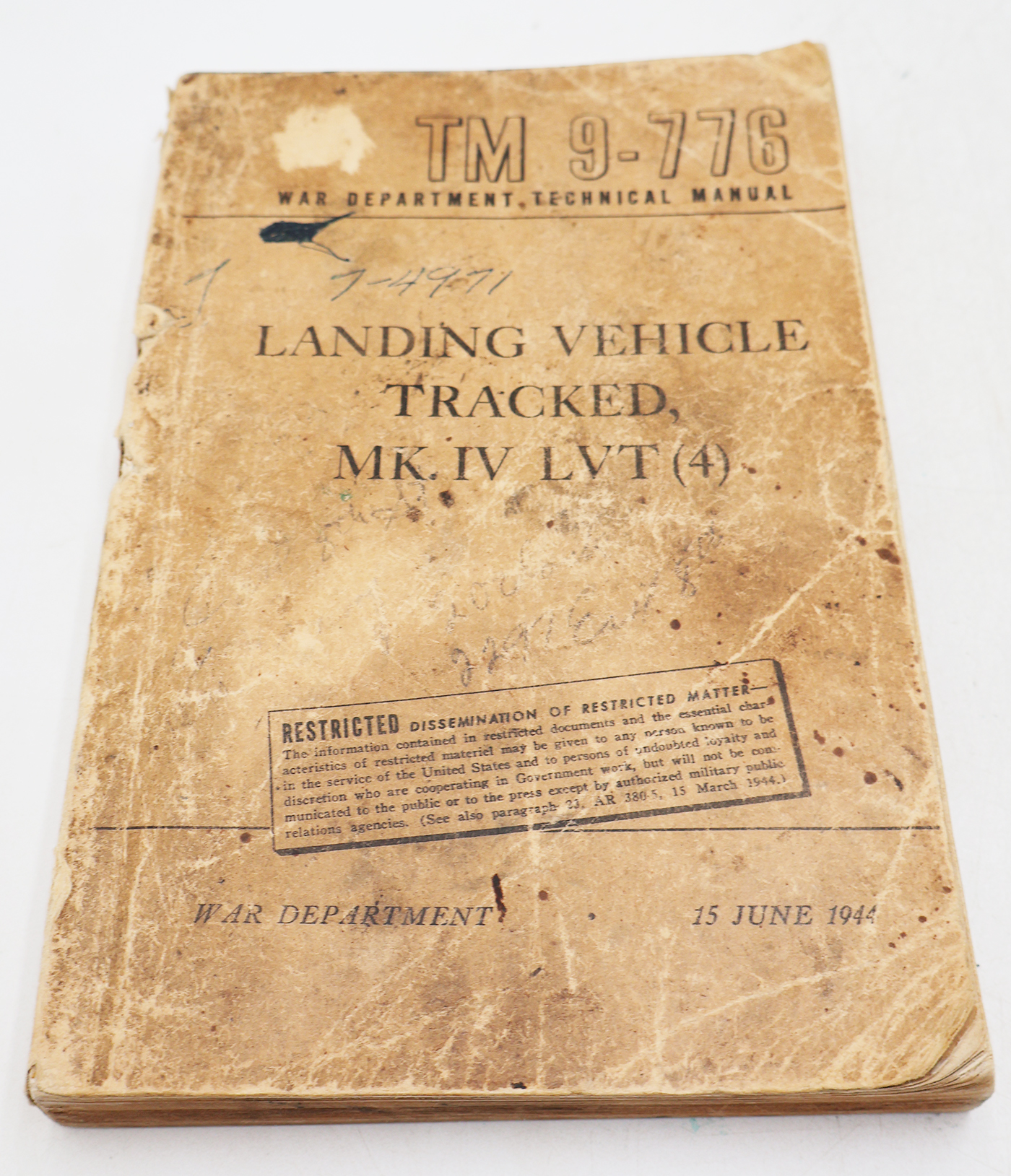 WWII US War Department Manual Handbook On Landing Vehicle Tracked Mk. IV LVT (4). Softbound. Dated 1944. Marked TM 9-776. Over 388 pages. Lots of great illustrations and photos. Cover is heavily worn, but the pages and binding are in good shape. No torn or missing pages.