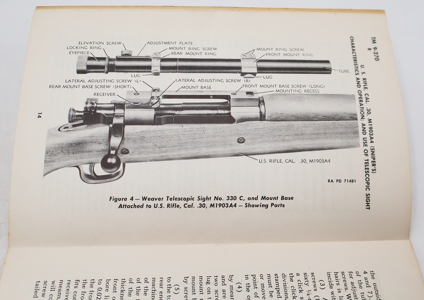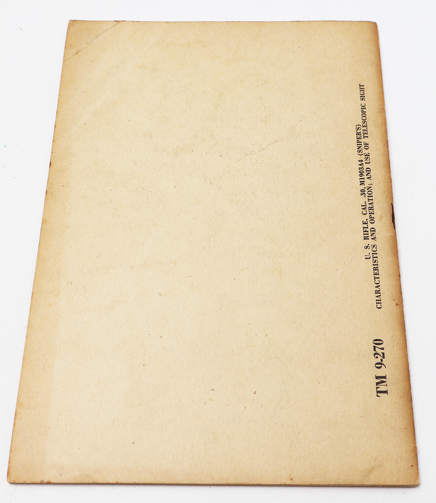 WWII US War Department Manual Handbook On the M1903A4 Sniper Rifle. Softbound. Dated 1943. Marked TM 9-270. 29 pages. Lots of great illustrations and photos. Minor wear to the cover, but pages and binding are strong. No torn or missing pages.