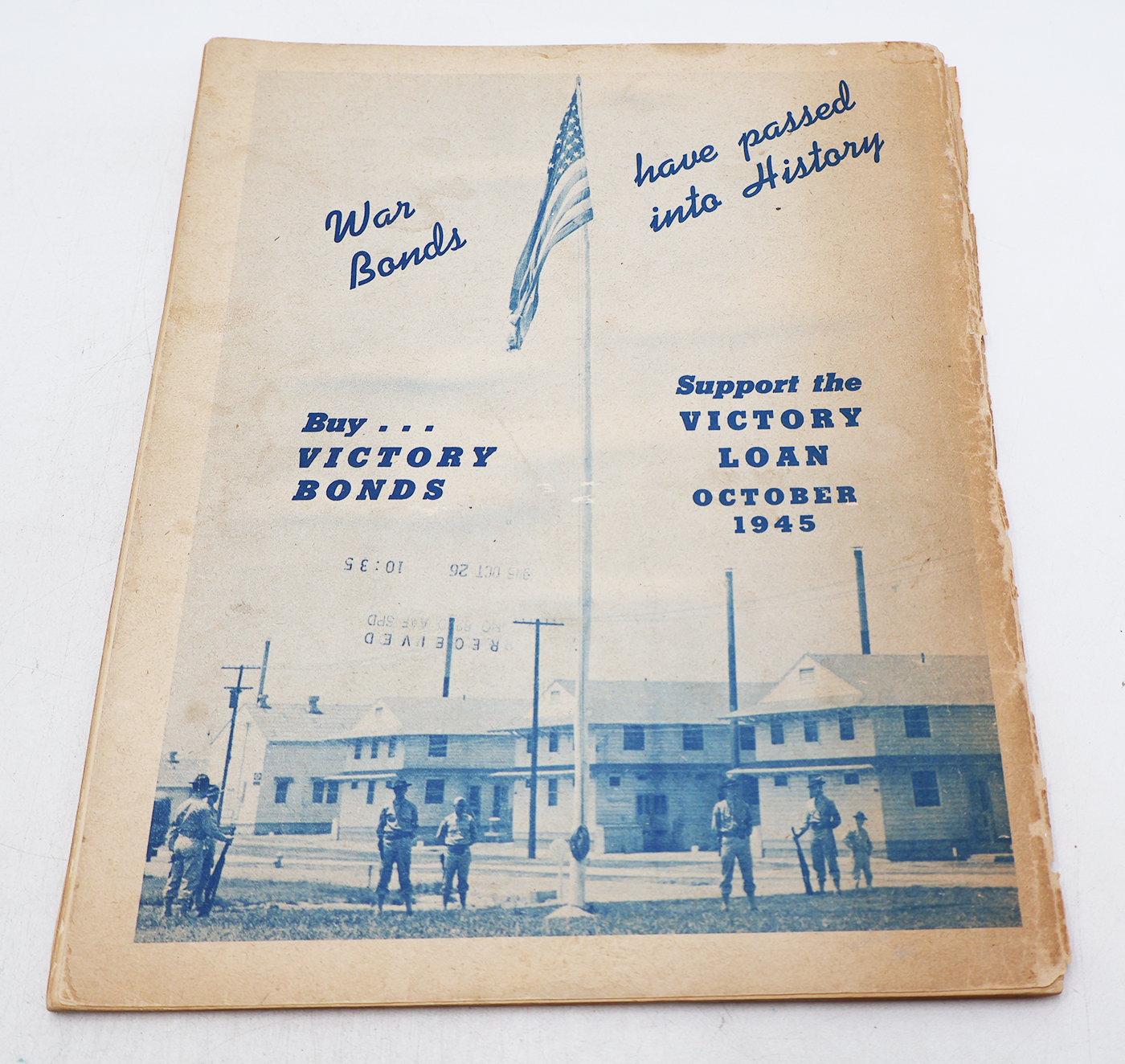 The Ordnance Sergeant Special Victory Issue Magazine. September 1945 dated. 80 pages. Lots of great illustrations and photos. Some notable wear to the cover, but the binding is still intact with no torn or missing pages.