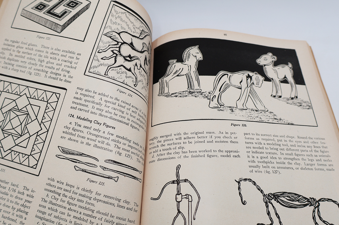 WWII US War Department Manual Handbook On Soldier Handicrafts. Softbound. Dated 1945. Marked TM 28-325. 185 pages. Lots of great illustrations and photos. Minor wear to the cover, but pages and binding are clean and strong. No torn or missing pages. This manual is directed at who ever would be responsible for establishing an arts and craft facility on a military base or camp.
