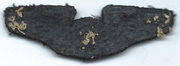 WWII China Burma India Theatre Made Bullion Navigator Wing. Three inches long. Silver bullion details on a black wool like background. Used.