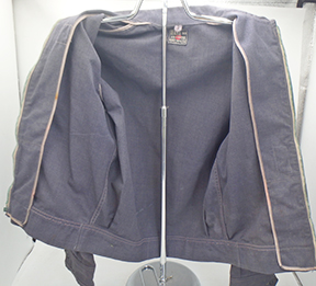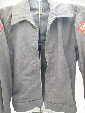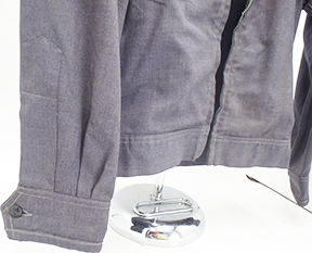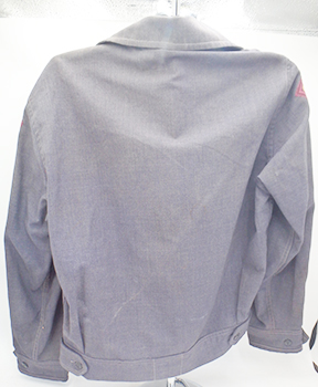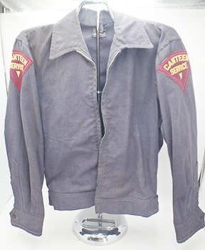 WWII era American Red Cross Canteen Workers Jacket. Wool serge material. Material is solid with just minor wear and staining. Zipper is broken. Wool shoulder patches have minor mothing, but are in good condition. The length from shoulder to shoulder is 17 inches. Sleeve length is 22 inches. Chest is 18 inches and length from top of collar to bottom of the shirt is 25 inches.