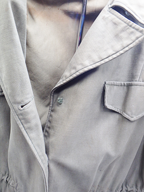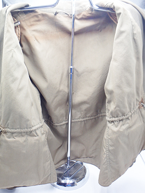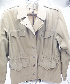 WWII era US Army M-43 Women's Field Jacket. The cotton shell is in good condition with just some staining and wear from usage. No notable holes can be seen. All of the buttons are intact except for the top one, which is missing (see photos). The lining is in good shape. Named on the collar, but is hard to make out. Measures 16 inches shoulder to shoulder. 17 inches across the chest. 23 inch sleeve length and 28 inches from the top of the neck to the base of the jacket.