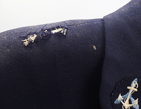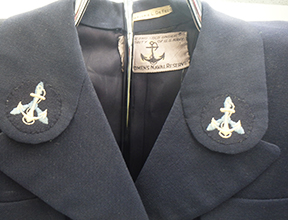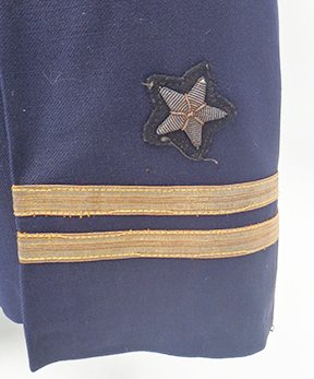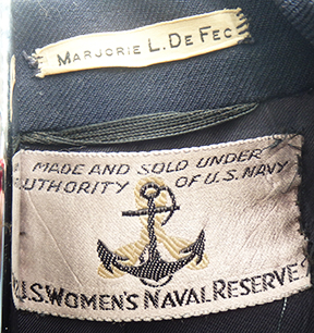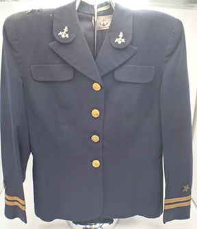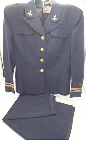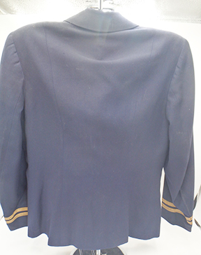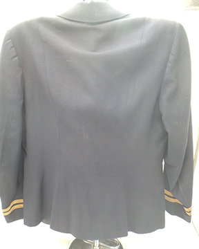 WWII US Navy WAVES Officers Uniform Set. Jacket and skirt. Named uniform set. Jacket is in good shape except for the rip on the right shoulder (see photos). Insignia is clean. Jacket measures shoulder to shoulder 15 inches, front chest size 17 inches, sleeve length 23 inches and top of the neck to the base of the jacket is 27 inches. Skirt has some minor wear and staining. Skirt measures 30 inches at the waist and 26 inches in length.