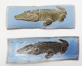 Vietnam era Alligator Liberty Cuffs Pair. Measures 5.5 inches in length. Machine embroidered on twill. Some minor wear from storage. These are unused. Multiple available all in the same condition.