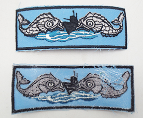 Vietnam era Light Blue Submarine Liberty Cuffs Pair. Measures 5.5 inches in length. Machine embroidered on twill. Some minor wear from storage. These are unused.
