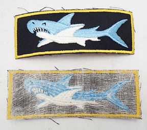 Vietnam era Shark Liberty Cuffs Pair. Measures 5.5 inches in length. Machine embroidered on twill. Some minor wear from storage. These are unused.