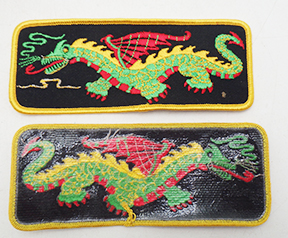 Vietnam era Yellow Border Dragon Liberty Cuffs Pair. Measures 5.5 inches in length. Machine embroidered on twill. Some minor wear from storage. These are unused. Multiple available all in the same condition. All the dragons face left.