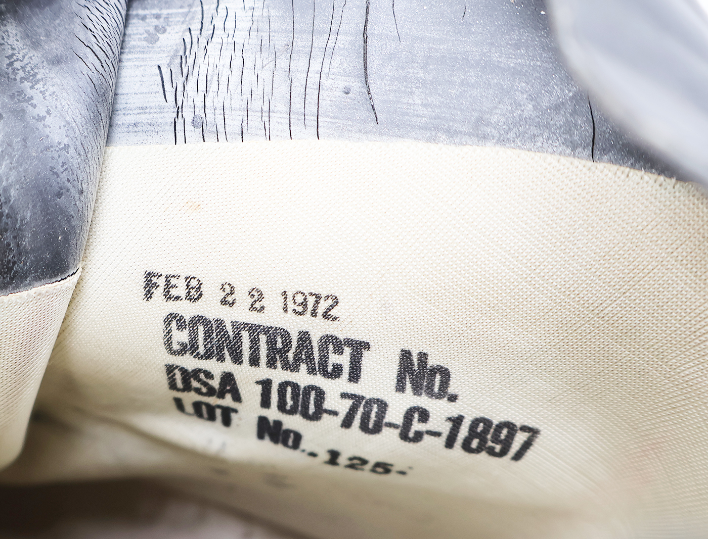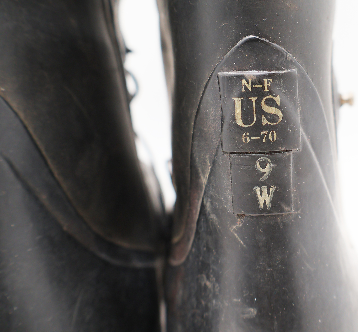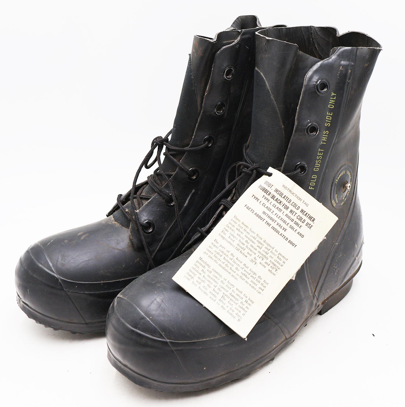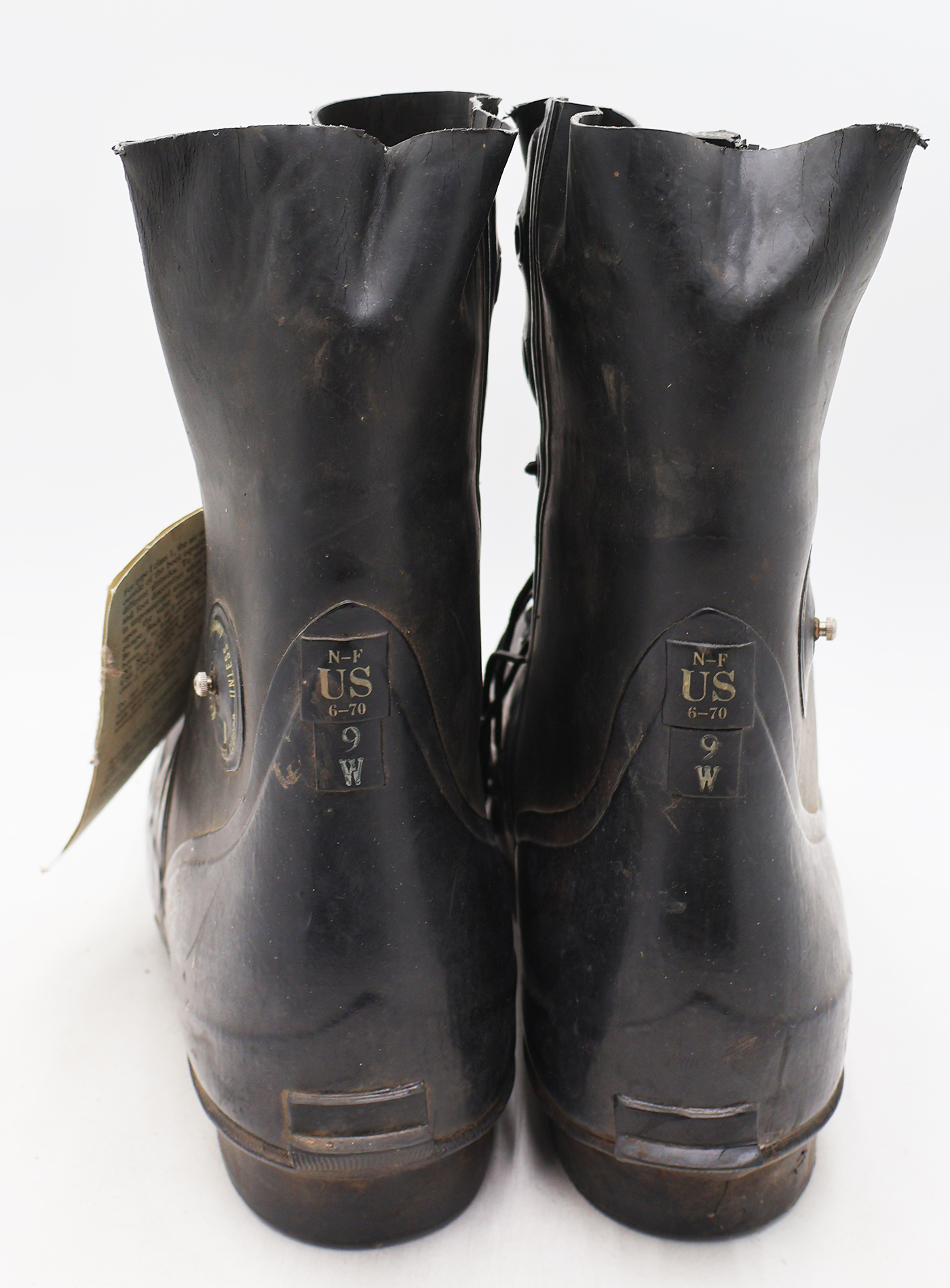 Vietnam era Extreme Cold Weather "Mickey Mouse" Boots. With the tag and are unissued. The rubber is worn with some minor cracking, but is still supple. They are size 9W. 1972 dated.