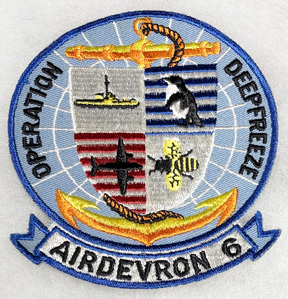 1960's US Navy AIRDEVRON 6 Operation Deep Freeze Squadron Patch. Six inches tall. Machine embroidered on twill. Unused.