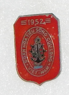 South Vietnamese River Pilot 1952 Badge. About an inch tall. POt metal construction, with painted details. Pin back.