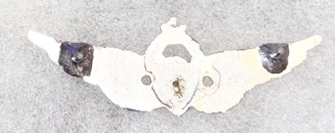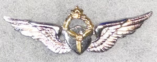 Shah Period Iranian Army Fixed Wing Pilot Wing. Two and a half inches long. Has three bladed prop design in the center. Plated finish. Clutch back.