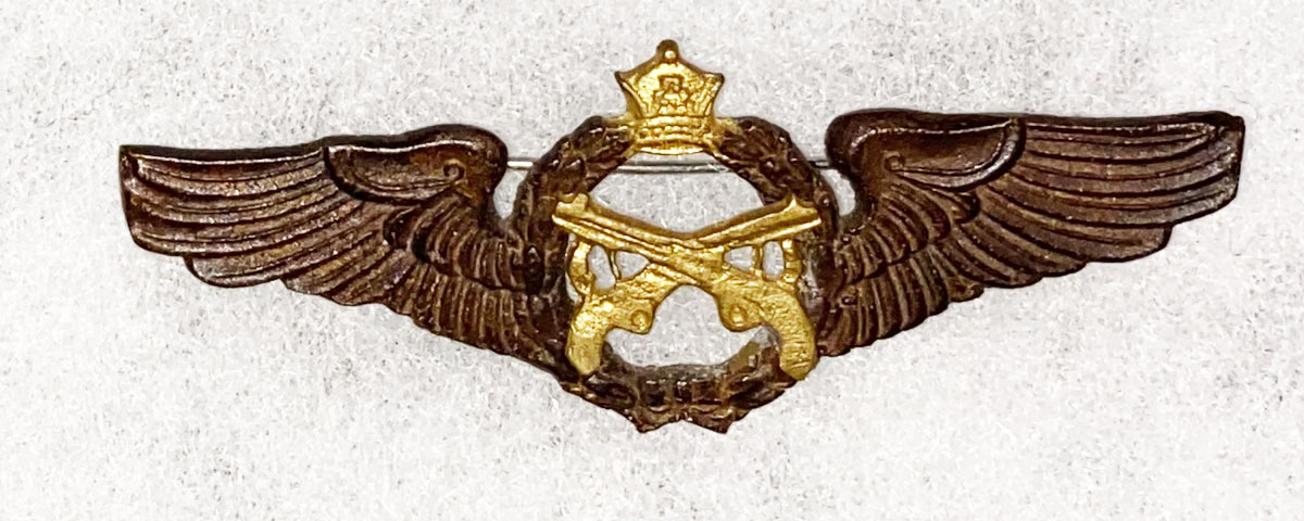 Shah Period Iranian Air Force Military Police Wing. Three inches long. Two tone metal finish. Pin back.