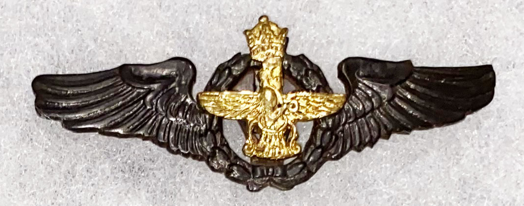 Shah Period Iranian Air Force Pilot Wing. Three inches long. Two tone metal finish. Clip like back.
