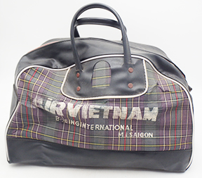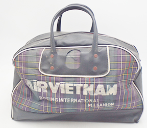 Vietnam era Air Vietnam Travel Bag. Bag is intact with minor staining and wear. A bit stiff and dry in spots. Minor surface rust on the metal hardware. Body overall is still supple and zipper works well. Still usable.
