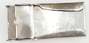 1960's-1970's Boatswain Mates Philippine Made US Navy Belt Buckle. About an inch and a half by three inches. Pot metal construction that is brass and chrome plated. Had carved design of a ships wheel with the sailors name and CM US NAVY below. Shows minor wear.