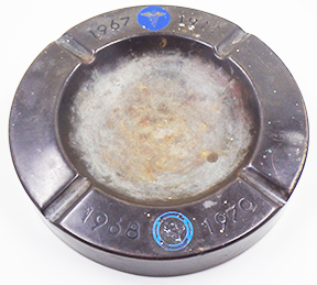 Vietnam era Trench Art Ash Tray for the 776th Tactical Airlift Squadron. Ash tray is made from a 155mm artillery shell. The tray has the medical department insignia on top and the squadron insignia on the bottom. The top is marked 1967 to 19?? and 1968 to 1970 on the bottom. The squadron was know for being part of the airlift for the seige of Khe Sanh.