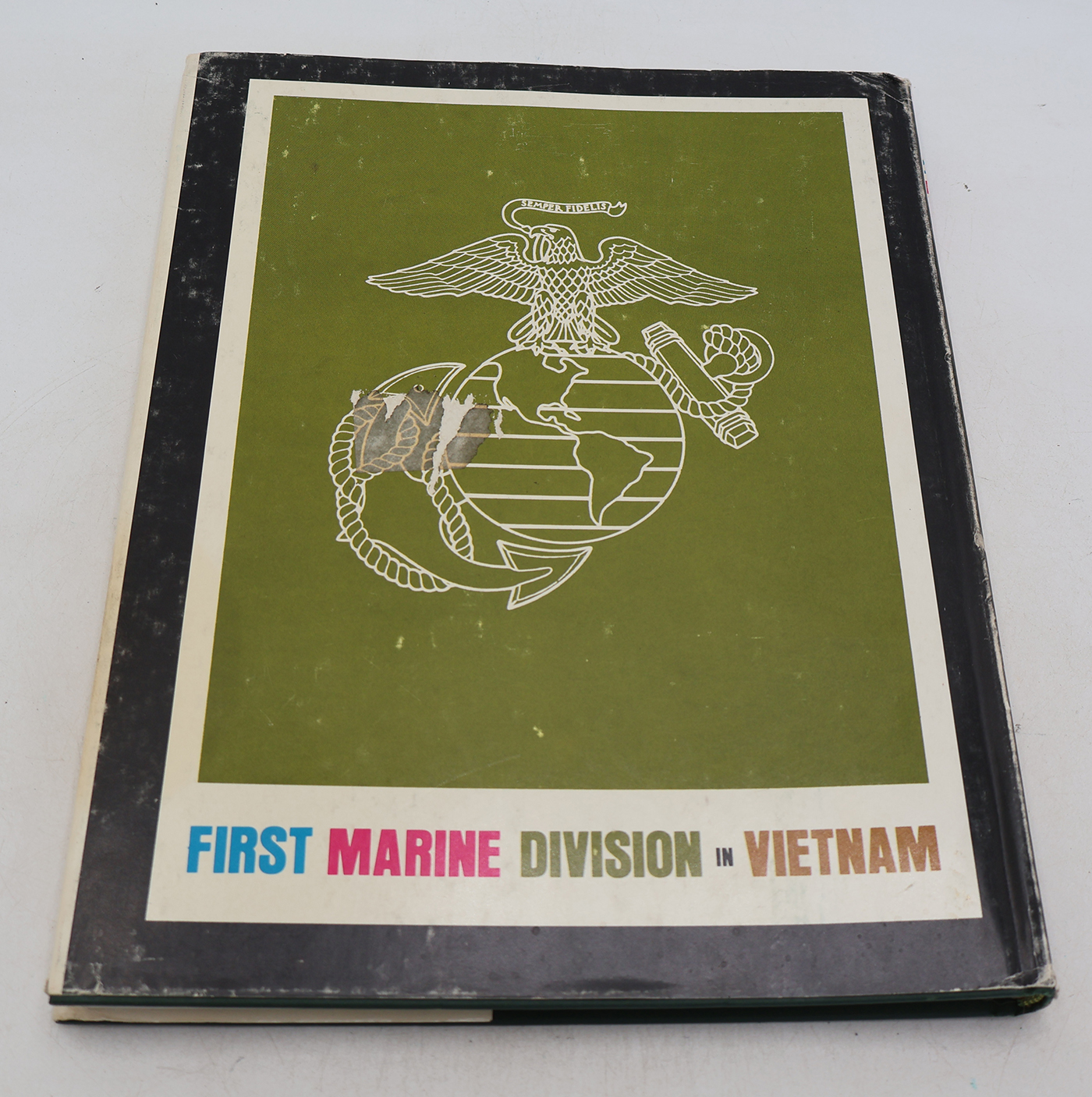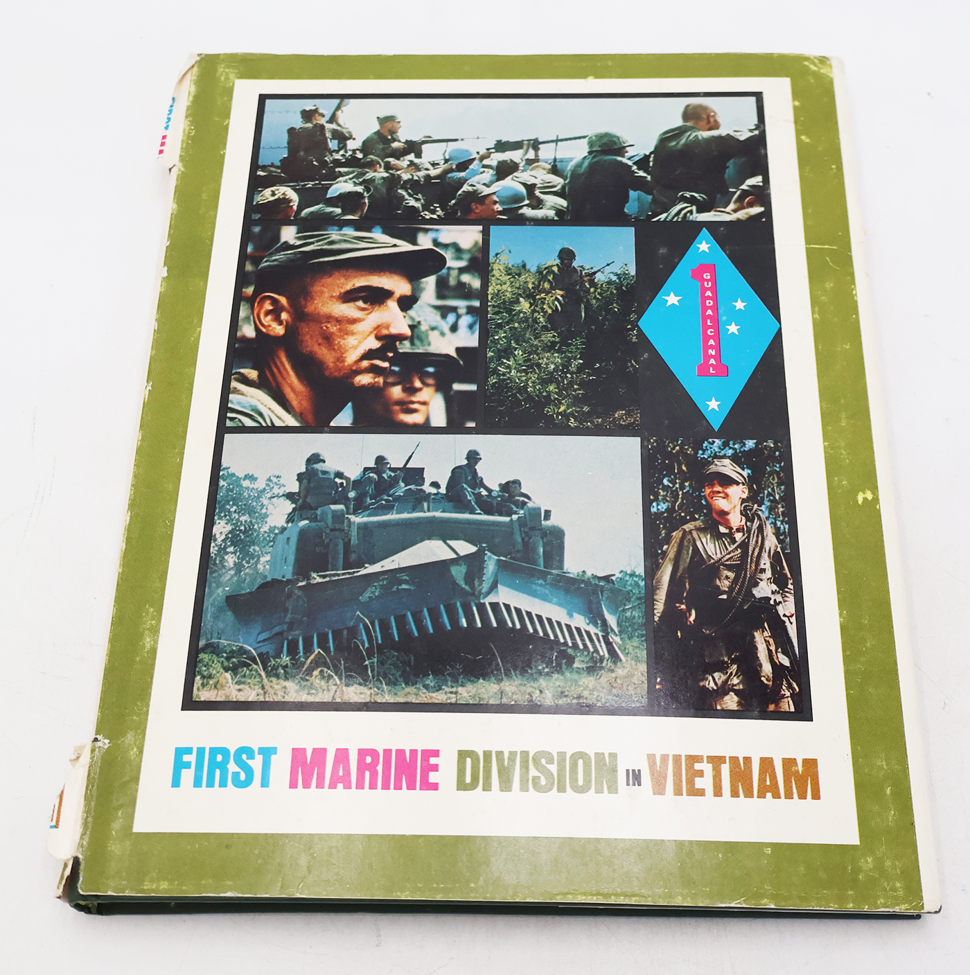 Vietnam era 1st Marine Division in Vietnam Unit History. The book cover and pages have minor wear and are slightly yellowed from age. Dust jacket has some tears. Lots of Photos and illustrations. The binding is strong. No torn or missing pages. The book is 1967 dated. The book contains approx. 130 pages.