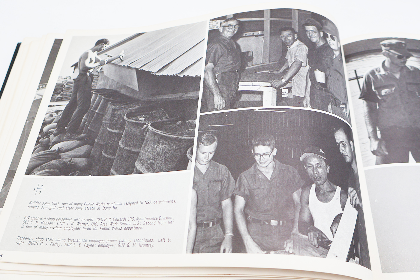 Vietnam era Naval Support In I Corps 1968 Da Nang Cruise Book. The book cover and pages have minor wear and are slightly yellowed from age. Lots of Photos and illustrations. The binding is strong. No torn or missing pages. The book is 1968 dated. The book contains approx. 256 pages.