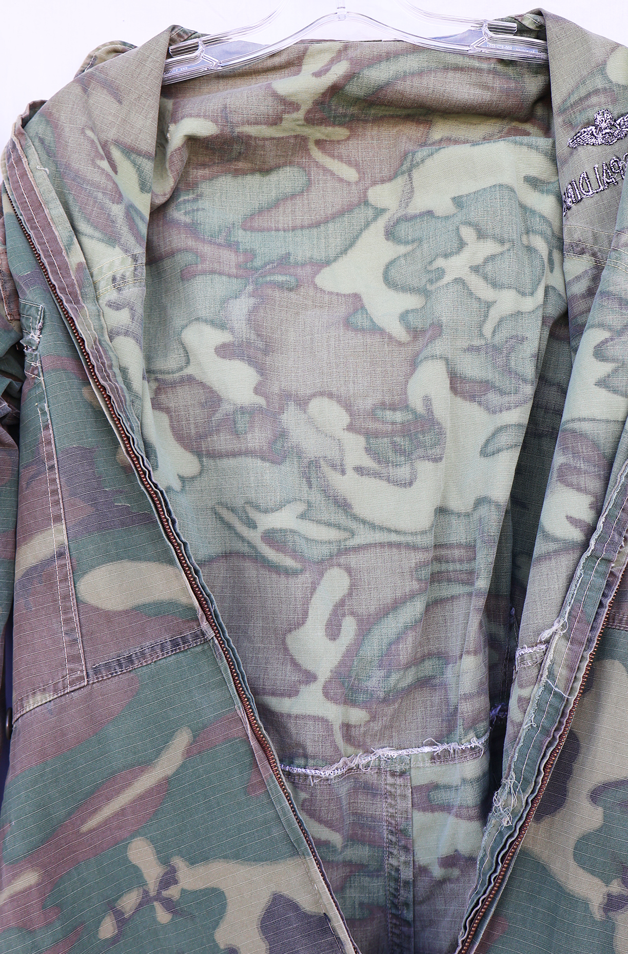 Vietnam US Air Force Senior Pilots ERDL Flight Suit. Thailand made rip-stop green dominate material. Cu like a K2B. Has Colonels rank directly embroidered on shoulders. On left chest is also directly embroidered name and wings. Has been used and worn but still nice. So is it a combat flight suit or a party suit? Medium size.