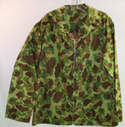 Early Vietnam Custom Made US Marine Corps Camo Jacket. Made out of older shelter half pattern material. Has two lower patch type pockets. On the collars are USMC SSGT chevrons. The zipper is a heavy duty, silver metal style. Large size as it measures out to about a size 48. Excellent condition. Looks Okinawian made for a early Recon unit.