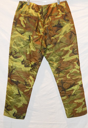 Vietnam ERDL Camo Poncho Liner Trousers. Quilted nylon body. Green dominant erdl pattern. Cut similar to a pair of OG-107 trousers. The waist is about 32 inches. Appears unworn. Have not had very many pair of these.