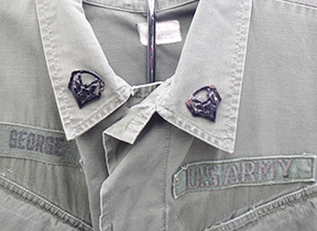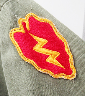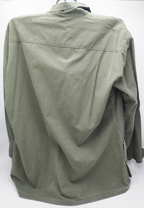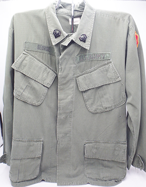 Vietnam era US Army 25th Infantry Division Jungle Shirt. Standard issue rip-stop shirt. All insignia is US made except for the US Army name tape, which is Viet made. Labelled size Medium - Short. Has been used and is a bit wrinkled, with some field repairs, but overall in good condition.