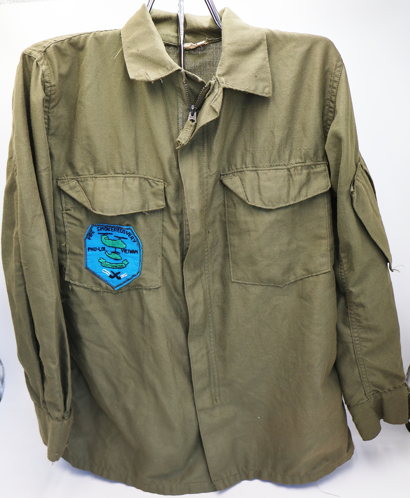 Vietnam War era 520th Transportation Battalion Nomex Shirt. The pocket patch is Vietnamese made. Marked a size Small-Regular. Wrinkled from storage. Just minor wear and staining. Overall in good condition.