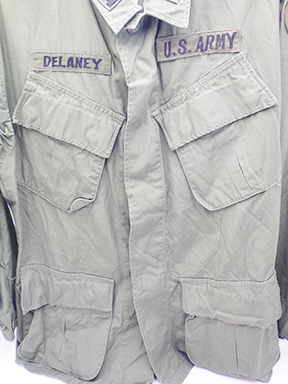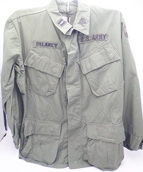 Vietnam era US Army Adjutant General Jungle Shirt. Standard issue rip-stop shirt. All insignia are Viet made except for the shoulder patch, which is US made. Labelled size Small - Short. Has been used and is a bit wrinkled but overall in good condition.