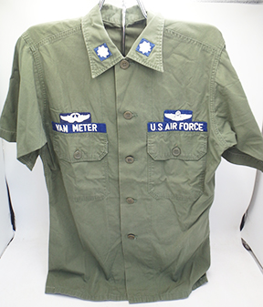 Vietnam era US Air Force Advisor to Vietnamese Air Force Fatigue Shirt. Standard issue OG-107 shirt. Chest measures 19 inches and top of the shirt to the base of the shirt is 30 inches. Insignia appears to be Viet made. Has been used but still in good shape.