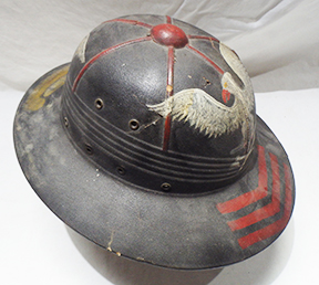 WWII era US Navy SeaBees Named Painted Pith helmet. The fiber body is in solid condition with some cracking on the crown and chipping along the brim. The leather band is in dry but intact. The name is on the inside, but is a bit hard to make out. Some truly incredible artwork to be seen on any piece of headgear. Artwork includes sea birds, axes and a canoe.