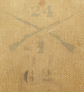 WWI era 24th Infantry Regiment "Buffalo Soldiers"  marked M-1910 E-Tool Cover. Used with some wear and staining. Cotton/canvas body is overall intact and metal hardware is in good shape. No makers mark can bee seen.