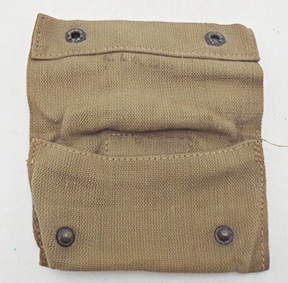 Pre WWI Pea Green M-1910 First Aid Pouch. Pouch is in solid condition with good integrity. Some staining from usage. Date is worn off, but the pouch is most likely 1915 or earlier dated. Early style snaps.