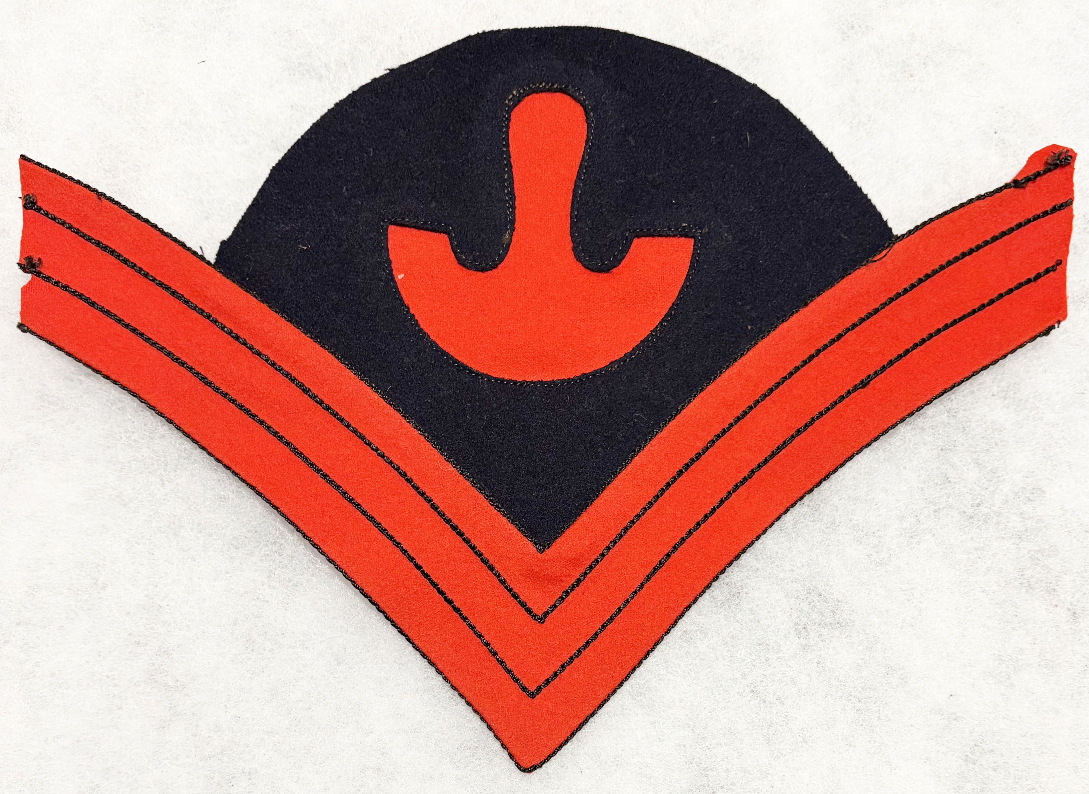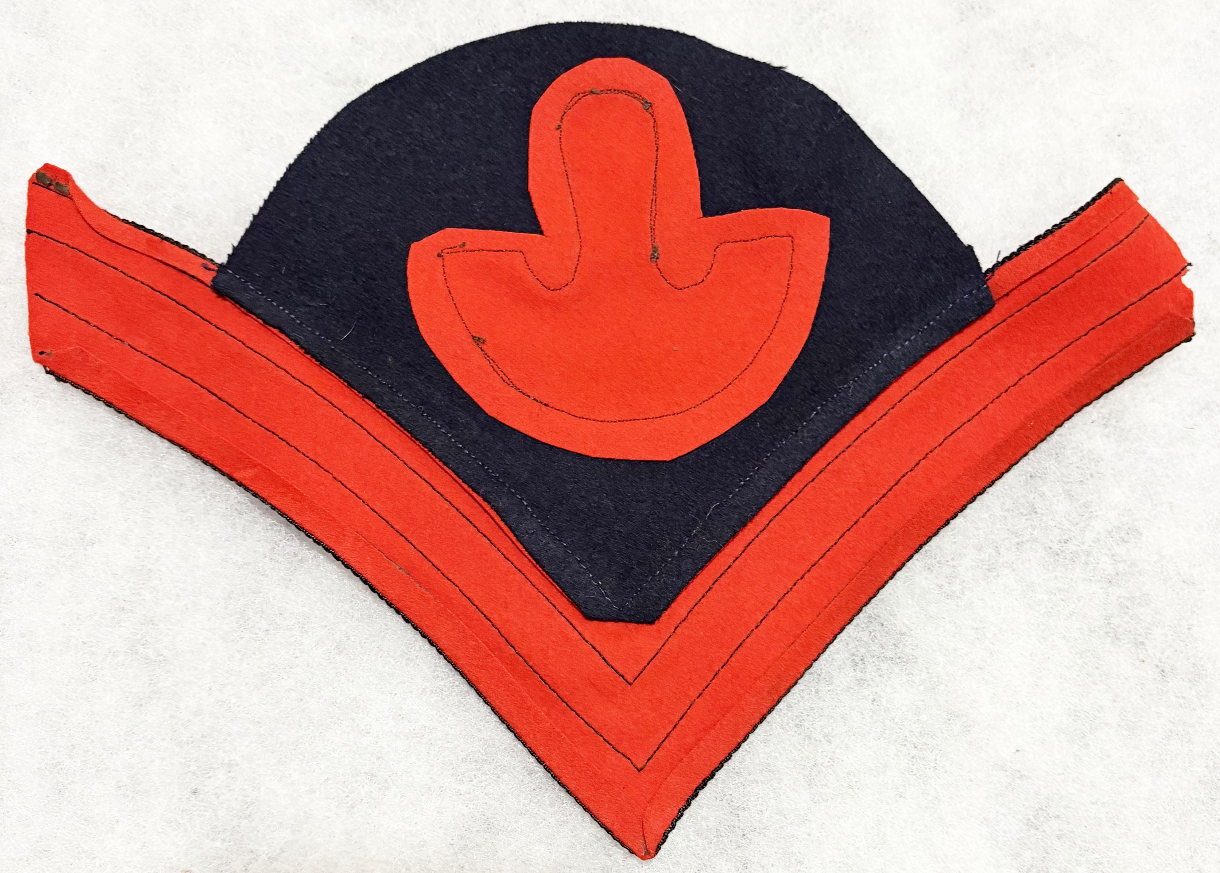 1873-1899 Artillery Saddler Sergeant Chevron. Multi-piece wool construction with machine embroidered details. Unused.